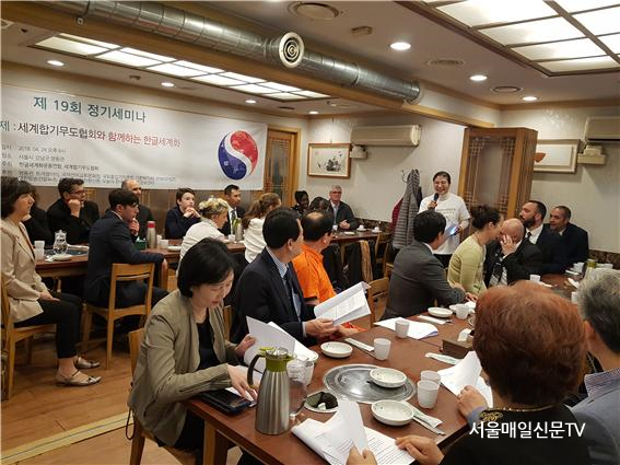 ÇÑÆí, Çѱۼ¼°èȿ¿¬ÇÕÀº 2018³â 4¿ù 24ÀÏ ¼¿ï ¼¼°èÇѽĺ»ºÎ¿¡¼ ¼¼°èÇձ⹫µµÇùȸ¿Í »óÈ£¿ìÈ£Çù·Â Çù¾à½ÄÀ» °³ÃÖÇÑ ¹Ù ÀÖ´Ù. ¿À¾ç½É ÀÌ»çÀåÀº À̰Á¾ ºÎȸÀåÀÌ À¯·´ 20¿© °³±¹ÀÇ °üÀåµé°ú ÇÔ²² Çձ⹫µµ¸¦ º¸±ÞÇϰí ÀÖÀ½À» °Á¶Çϸç, ÇѱÛÀÌ ±× ¹ßÀüÀÇ ¿øµ¿·ÂÀÌ µÉ °ÍÀ̶ó°í ¹àÇû´Ù.
