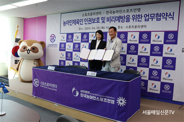 ½ºÆ÷Ã÷À±¸®¼¾ÅÍ ¹ÚÁö¿µ ÀÌ»çÀåÀº "À̹ø Çù¾àÀº üÀ°ÀÎ ´©±¸³ª Â÷º°°ú Æí°ß ¾øÀÌ ¼ÒÅëÇÒ ¼ö ÀÖ´Â ½ºÆ÷Ã÷ ȯ°æ Á¶¼ºÀ» À§ÇÑ Ã¹°ÉÀ½"À̶ó¸ç "¼¾ÅÍ´Â Á¶»ç°ü Æ÷ÇÔ Àü Á÷¿øÀ» ´ë»óÀ¸·Î ¼ö¾î ±³À°À» ½ÃÇàÇÏ¿© ³ó¾ÆÀΠüÀ°Àο¡ ´ëÇÑ ÀÎ½Ä °³¼±¿¡ ¾ÕÀå¼³ °Í"À̶ó°í ¹àÇû´Ù.